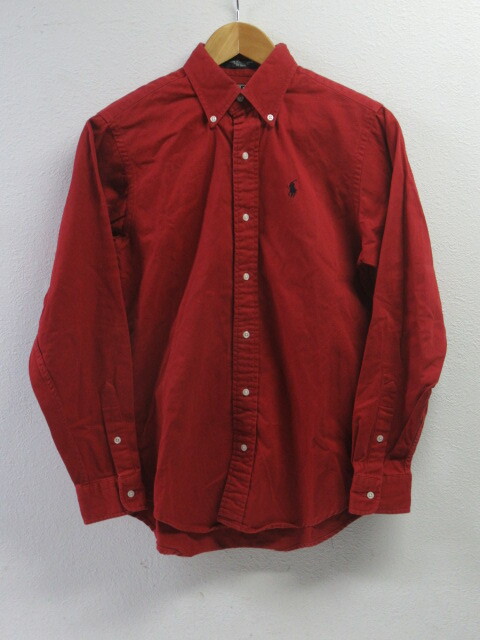 > ■Ralph Lauren ラルフローレン ボタンダウン 長袖シャツ Lサイズ 赤 無地 ワインレッド