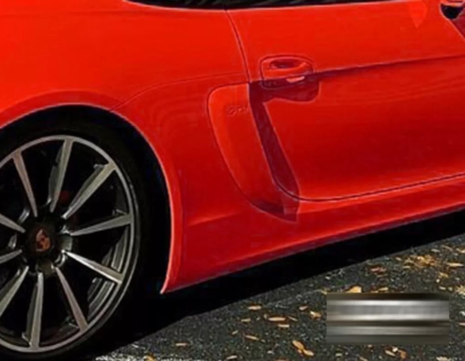 - 【ガーズレッド】#84A カラー GT4 ポルシェ ケイマン/ボクスター(981) サイドインテークカバー 塗装費込 左右セット ABS エアロ ロゴ有