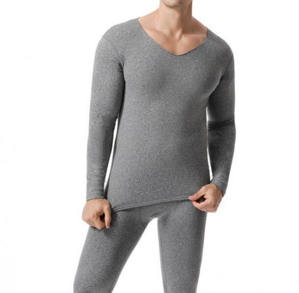 > SALE! 上下セット メンズ アンダーウエア あったか 防寒 インナー 秋冬 肌着 Vネック ヒートテック ライトグレー 2XL[サイズ 色 選択可]