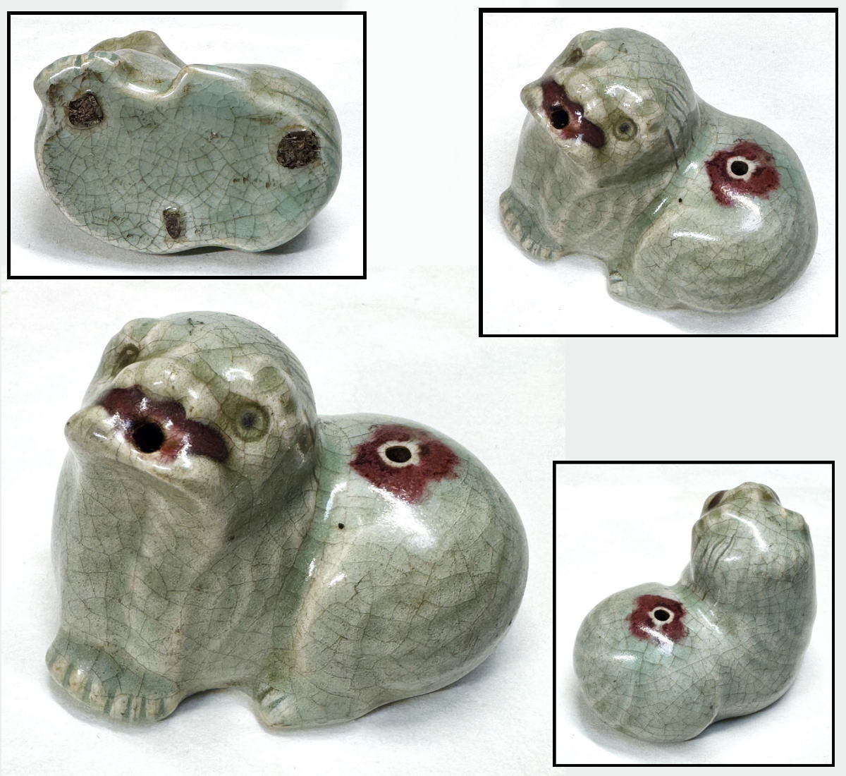 - 【送料無料】古高麗 珍獣青磁辰砂水滴 朝鮮古陶磁器 李朝 骨董 古玩 朝鮮古美術 古道具 細密細工 (書道先生所蔵品出し) WWTT224
