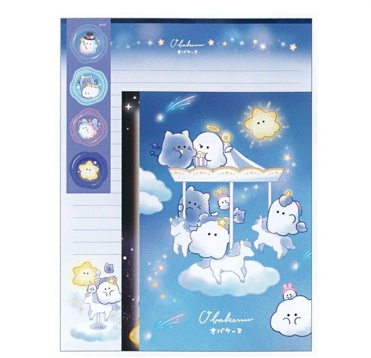 > @【即決】★オバケーヌ レターセット★便箋2柄各6枚 封筒2柄各3枚 クラックス 蓄光シール付 手紙 ワンダーランド おばけ ブルー // 124135
