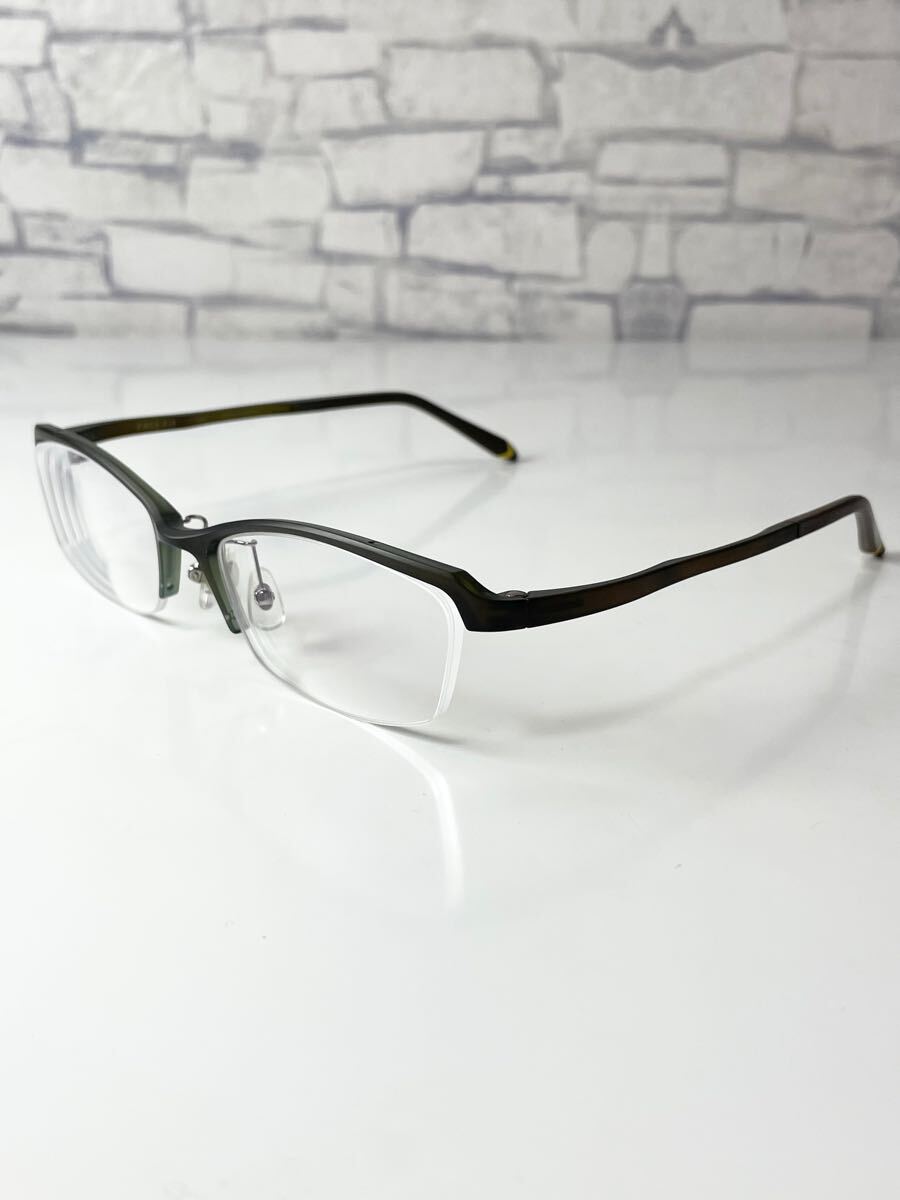 > 極美品 FREE FIT FFT-063 フリーフィット ハーフリム カーキハーフ 眼鏡 良品