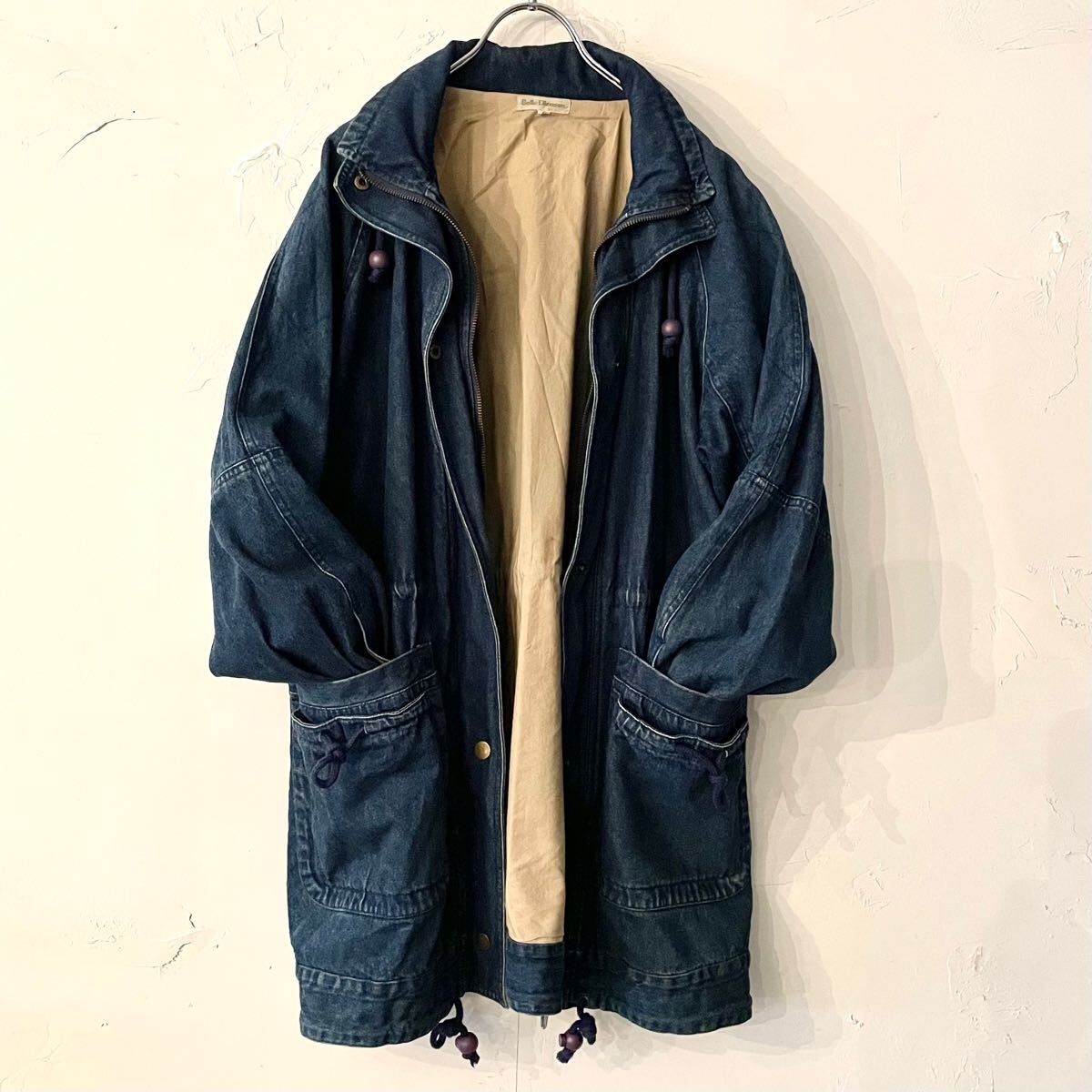 > ヴィンテージ デニム ワークコート カバーオール ラグランスリーブ S オーバーサイズ インディゴブルー ドローコード レディース古着4