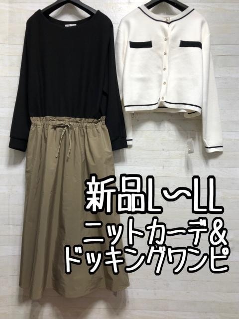 - 新品☆L~LLニットカーデ&綿混ドッキングワンピース〇A947