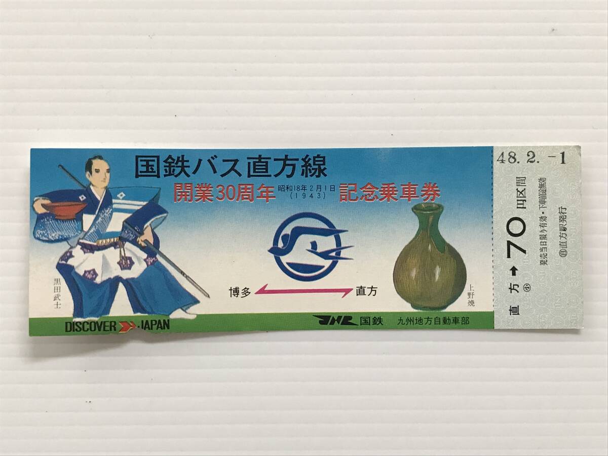 > 昔の切符 記念切符 国鉄バス直方線開業30周年記念乗車券 直方→70円区間 昭和48年 直方駅発行 HF6589 くるり岸田繁