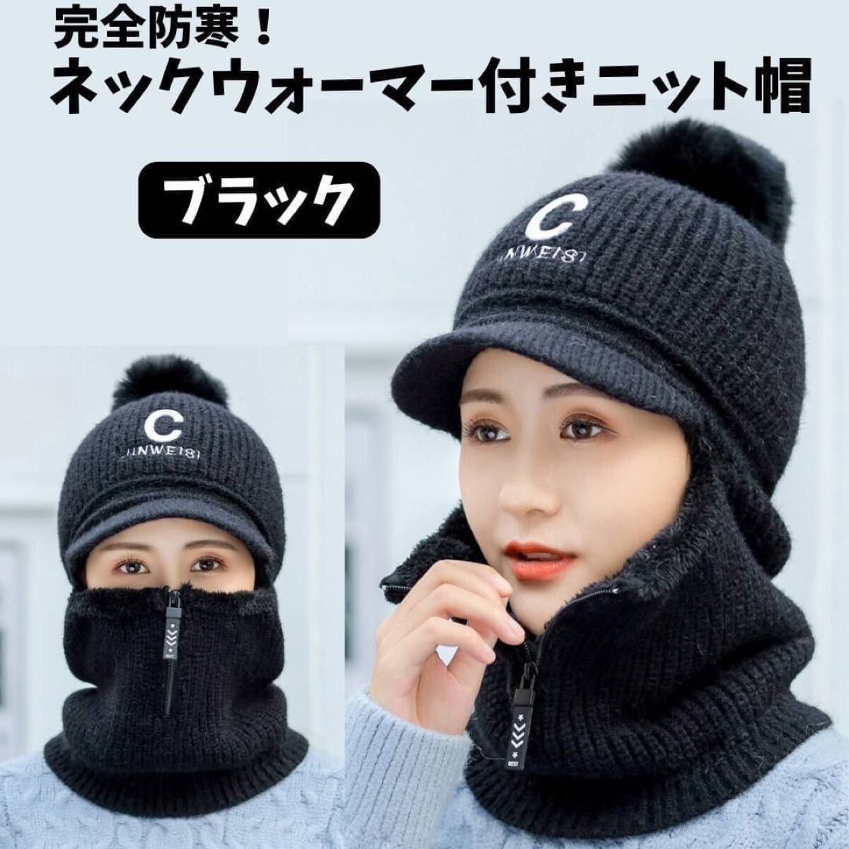 - ネックウォーマー ニット帽 ブラック 目出し帽 裏ボア 裏起毛 防寒 暖かい