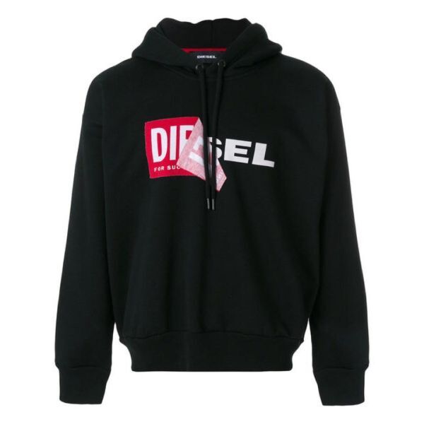 > ディーゼル DIESEL 剥がれロゴ めくり パーカー XXL ロゴ S-ALBY プルオーバー 黒 既に国内外で在庫薄!