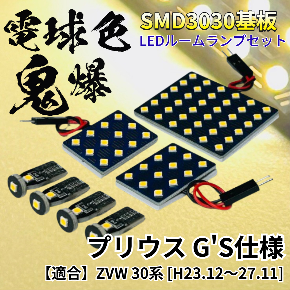 - 【電球色】プリウスG'S仕様 ZVW 30系 [H23.12~27.11]暖色 鬼爆基板 3030SMD LED ルームランプ セット 車内灯 室内灯 パーツ アクセサリ