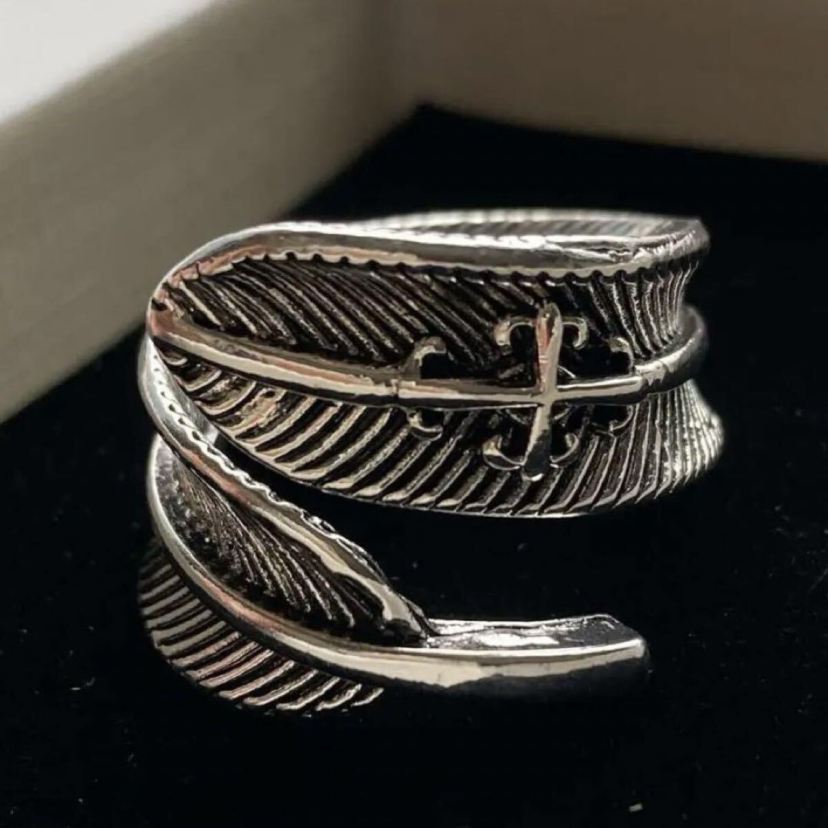 - シルバー925 羽根デザイン リング メンズ 大きいサイズ 18号 フリーサイズ