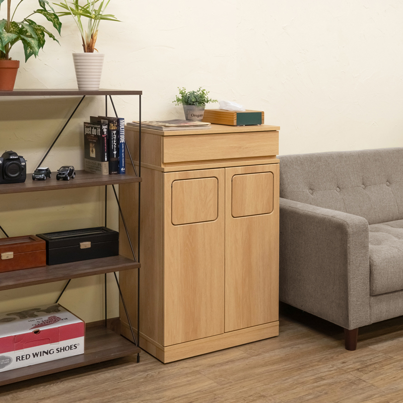 - ゴミ箱 スリム フラップ式 ダストボックス 45L×2分別 スリム 幅53cm キャスター SDB-02 ナチュラル(NA)
