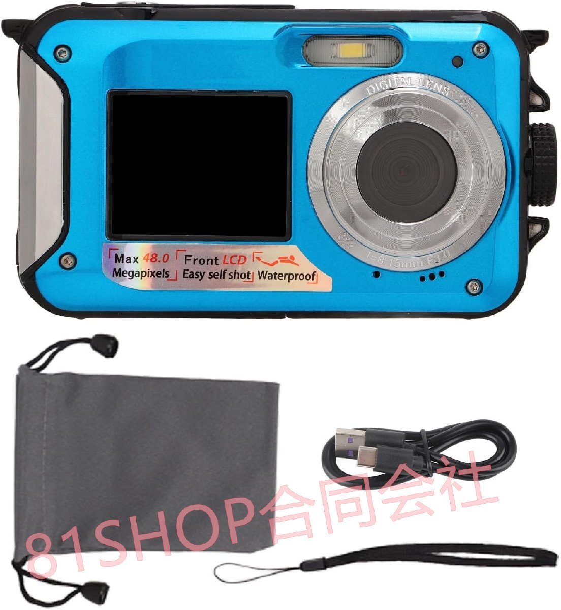 - 「81SHOP」 防水デジタルカメラ、2.7K 48MP 10フィート水中カメラ、屋外用16Xデュアルスクリーンデジタルカメラ(青)