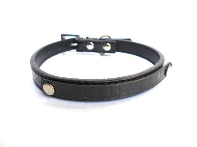 - 小型犬☆可愛い首輪 クロコ型押し ブラック S 27~33cm