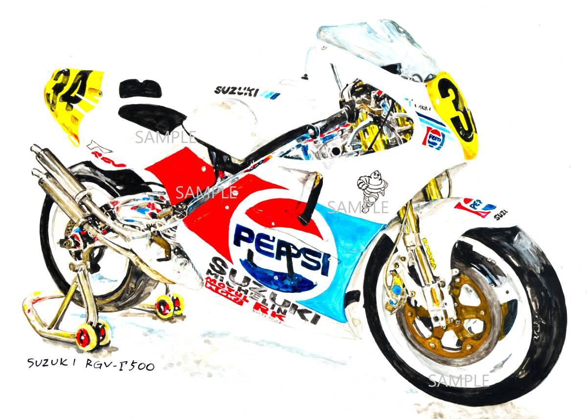 - A4プリントです スズキ RGV500Γ ペプシカラー 水彩画 バイクイラスト