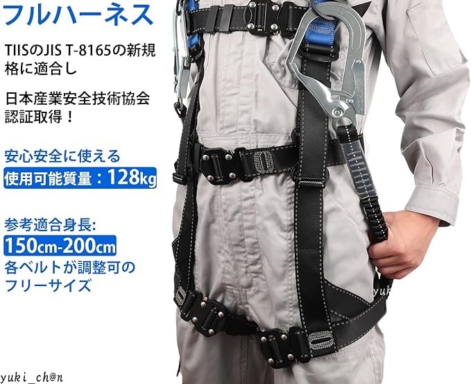 - フルハーネス 反射 ブルー 新規格 フルハーネス安全帯 安全保護 ワンタッチ 脱着簡単 ハーネス安全帯 ランヤード付き 2丁掛け 肩パッド