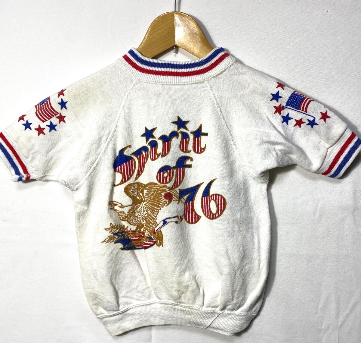 - ■ 子供用 70s 70年代 ビンテージ ” Spirit of '76 ” 染み込みプリント ラグラン 半袖 スウェット トレーナー ホワイト アメリカン ■