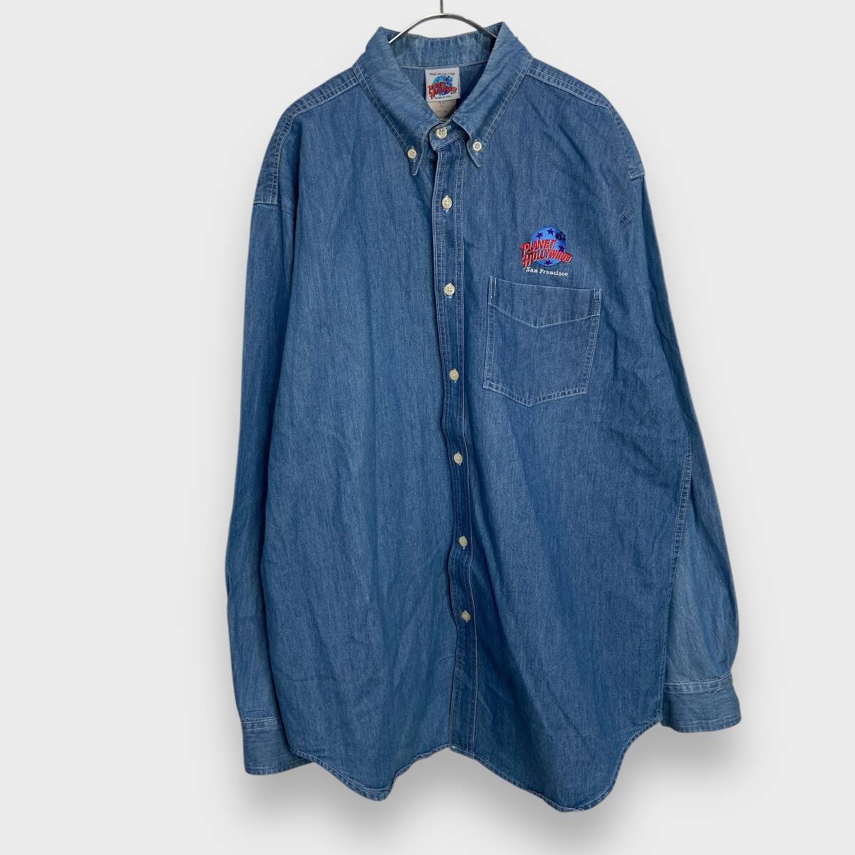- 送料無料☆90s☆USA製☆プラネットハリウッド☆ワンポイントロゴデニムシャツ☆ボタンダウンシャツ☆XL☆サンフランシスコ☆L24M
