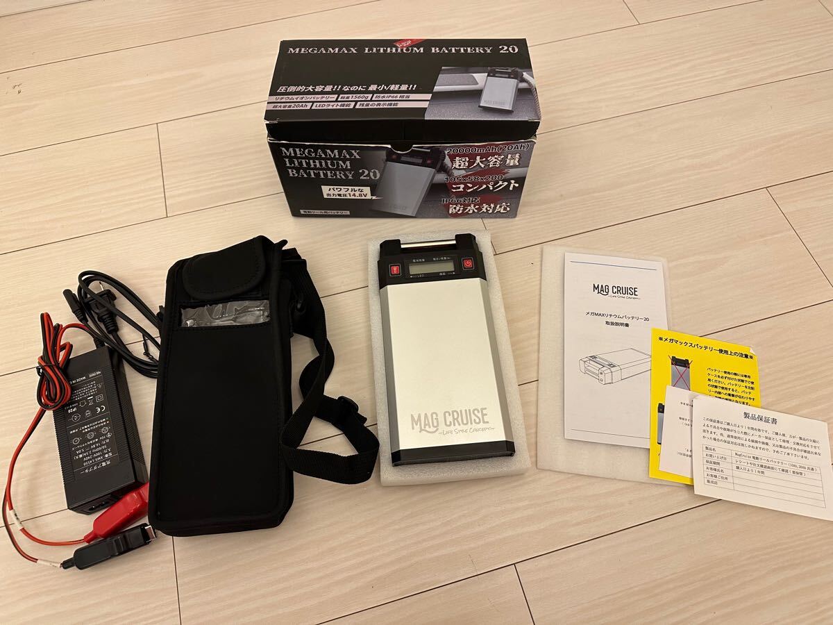 - 【新品未使用品】【送料無料】メガマックス リチウムバッテリー 14.8V 20Ah 電動リール用 互換バッテリー 充電器 セット 20000mAh 防水