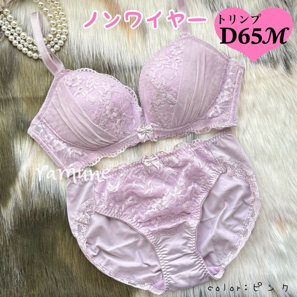 > 【トリンプ D65/M ピンク】新品 Triumph ノンワイヤー ブラジャーショーツ ブラ&ショーツ パッド付き 谷間を作る ワイヤーなし Dカップ