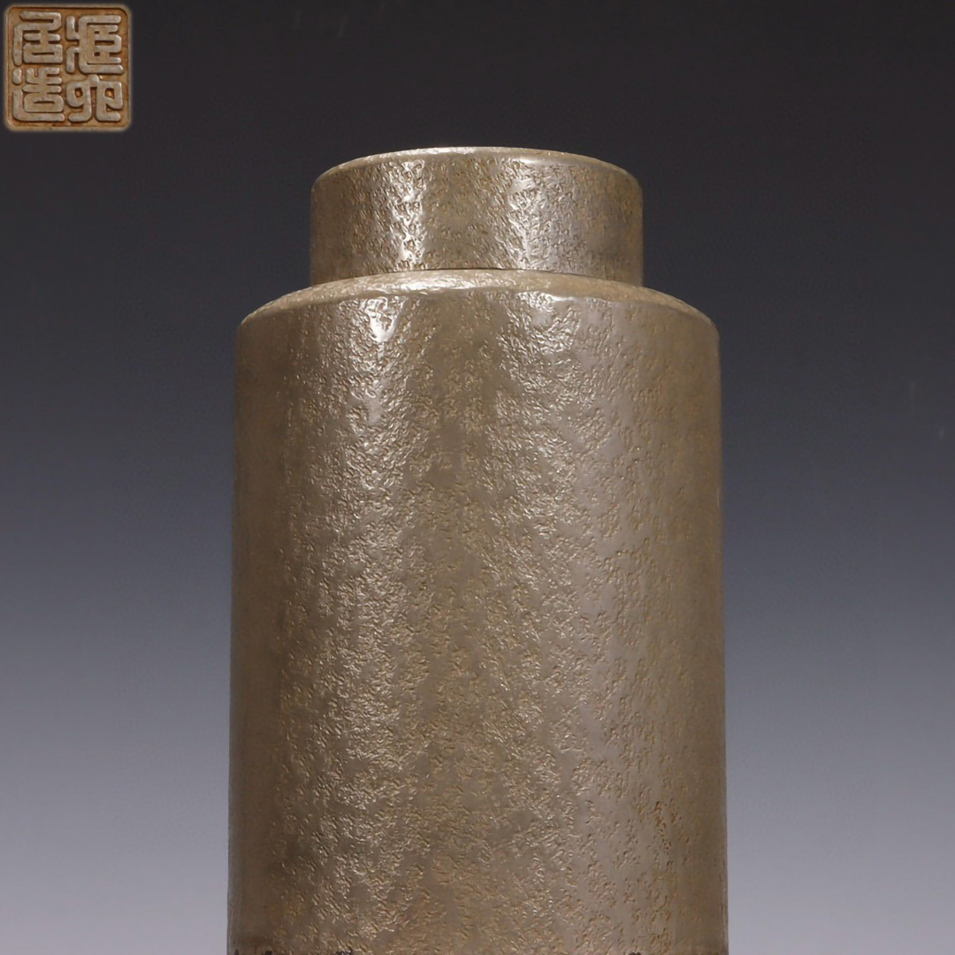 - 古錫 茶葉罐 藏六居造 「錫製鎚目紋茶心壺」 茶筒 茶入 茶壷 茶道具 純錫 金工 茶器 時代物 重1039g LT-2412215