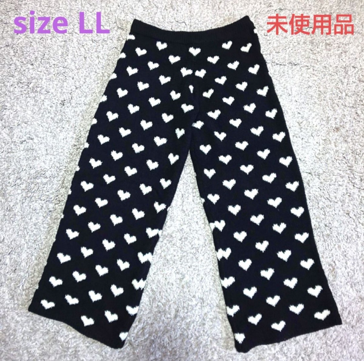 - ハート柄 モコモコルームウェアパンツ sizeLL【未使用品】