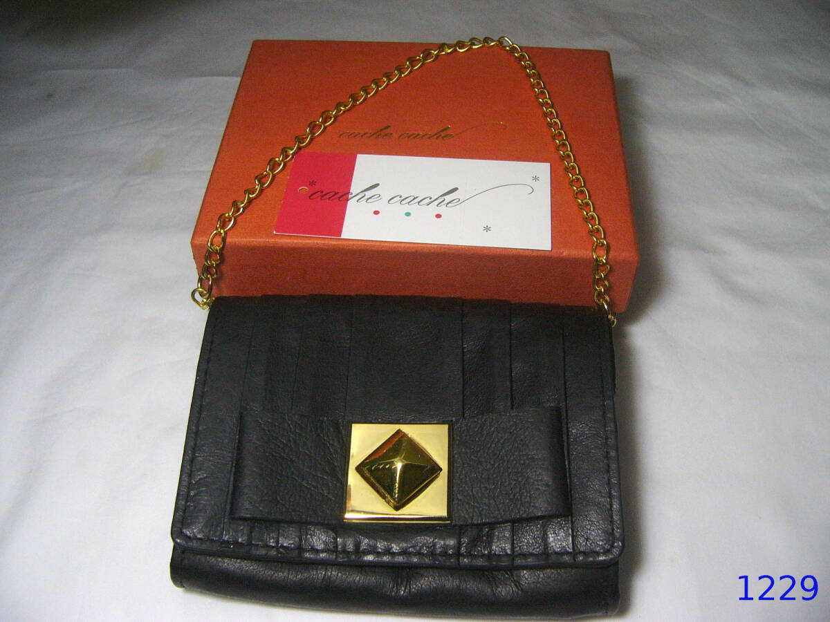 - cache cache☆カシュカシュ チェーン付きレザー製二つ折り財布 黒 ブラック 本革 小銭入れあり