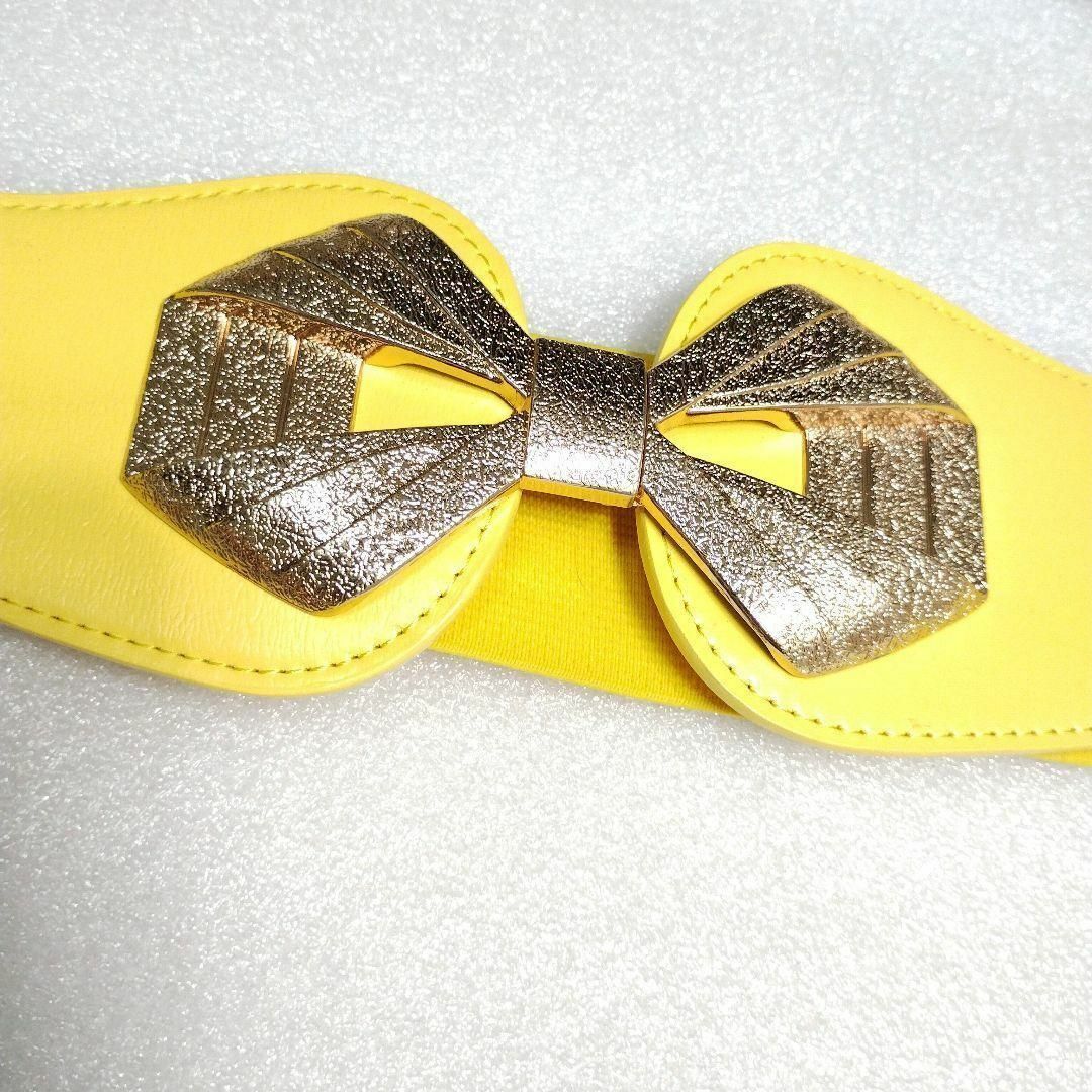- 【イエロー】リボンゴールド 太ベルト 飾りベルト 太ゴムベルト 伸縮性 オフィス