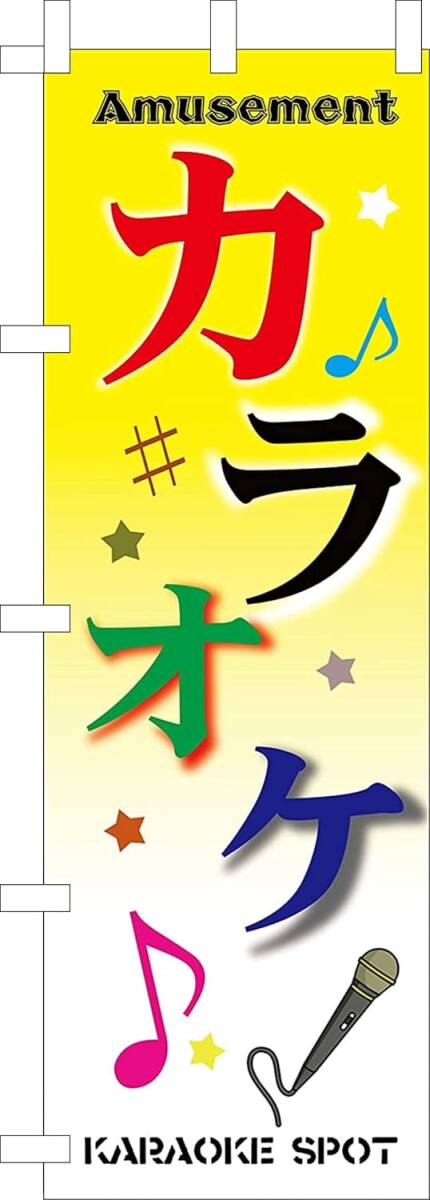 - のぼり旗「カラオケ のぼり カラオケ 幟旗 KARAOKマイク 黄 歌 音楽 ミュージック」何枚でも送料360円!