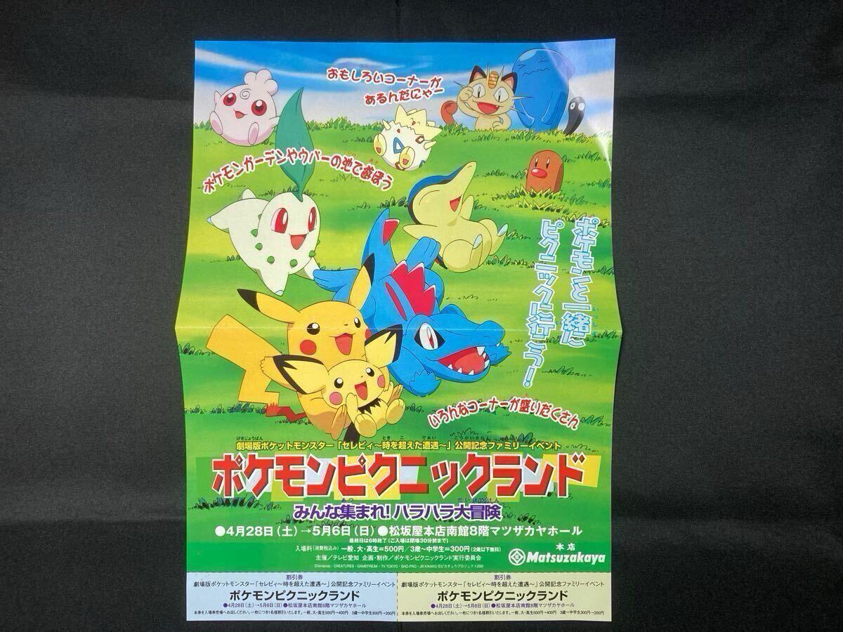 > ポケモン ピクニックランド チラシ ちらし フライヤー イベント 広告 松坂屋 割引券 ピカチュウ ニャース 金銀 Pokemon Picnic Land Flyer