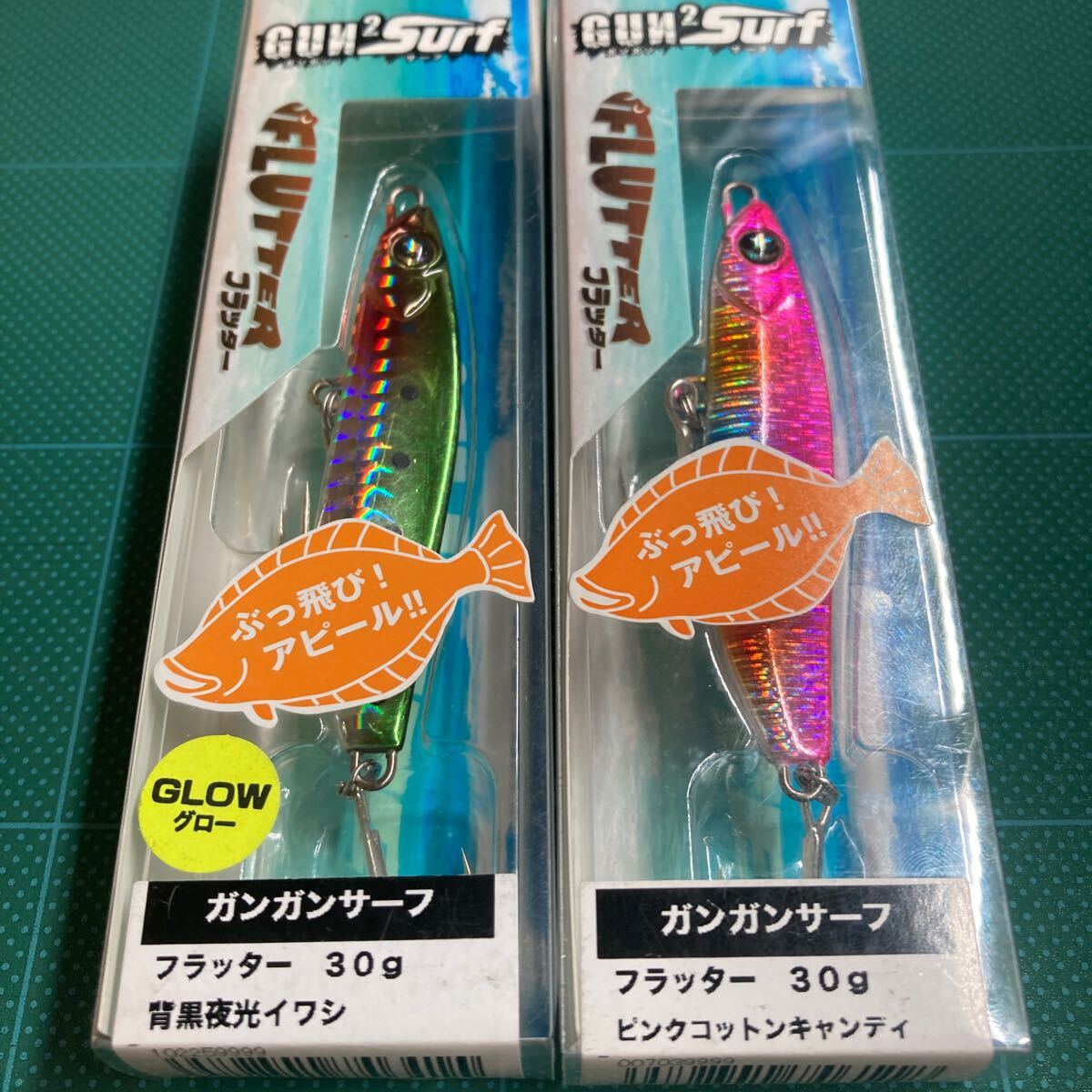 - 即決 2個セット 30g フラッター ピンクコットンキャンディ、 背黒夜光イワシ ガンガンサーフ オーシャンルーラー