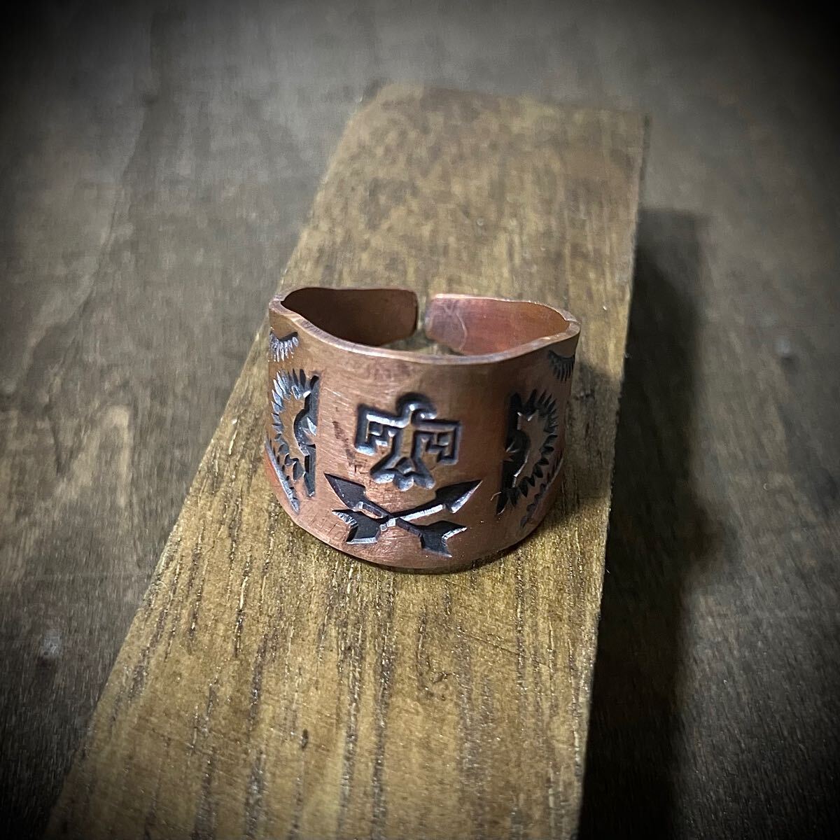 > copper 銅 スタンプワーク サンダーバード カッパー コッパー リング 指輪 20号 #インディアンジュエリー ヴィンテージ ナバホ族