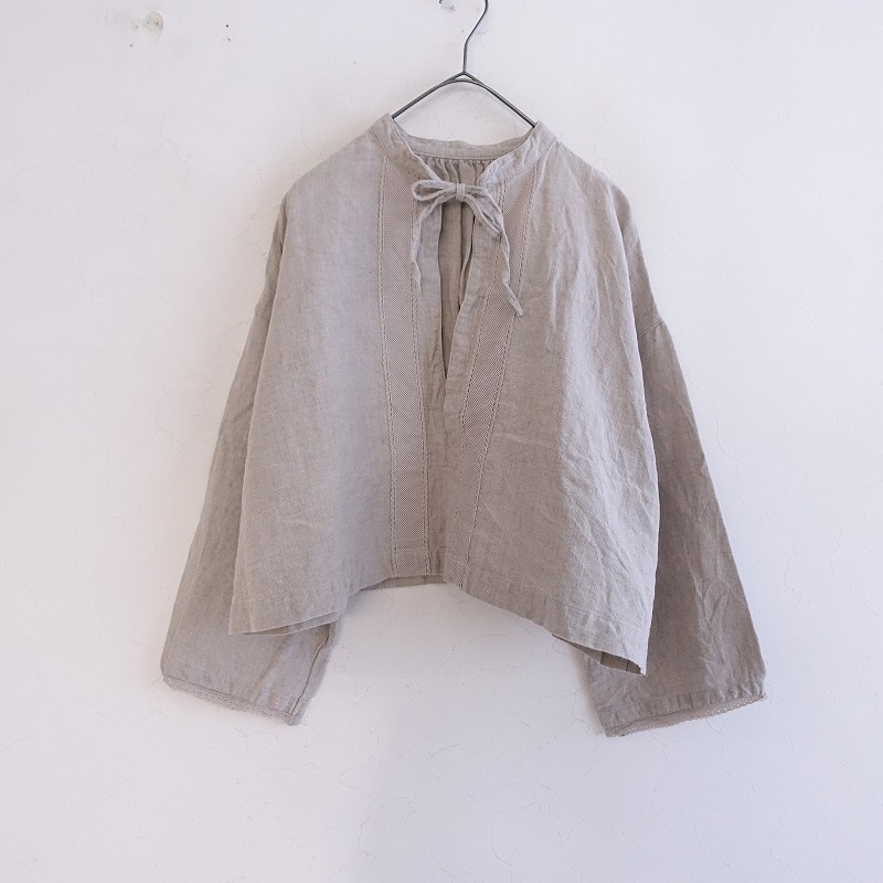 > 【2023】ネストローブ nest Robe *ブラックリネン×レースショートチャーチスモックブラウス*Fシャツワイド(33-2412-13)【30A52】