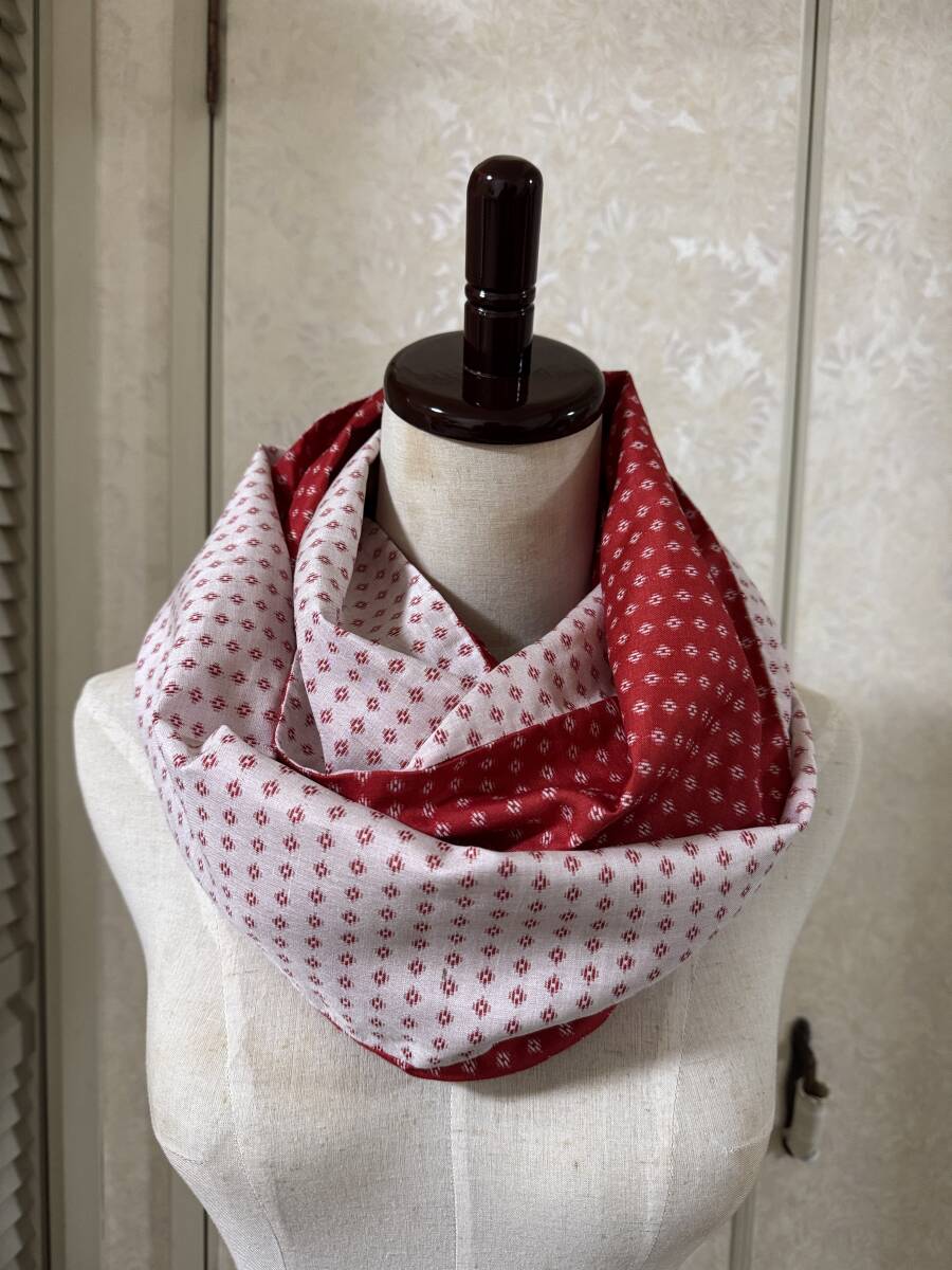 - 正絹 変り織り リバーシブル ダブルスヌード 紅白 / ハンドメイド 絹100% シルク ネックウオーマー マフラー 襟巻 KIMONO