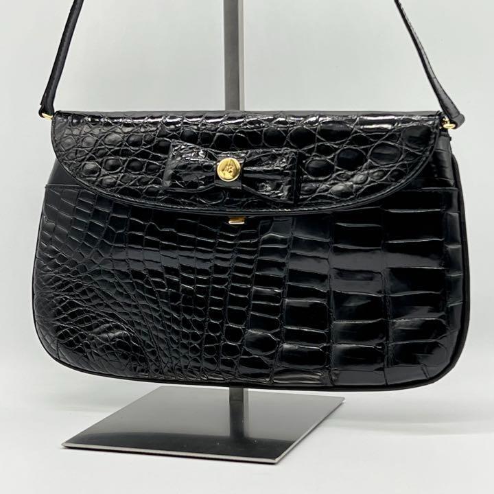 - 【美品】MODA BORS モーダボルゼ ショルダーバッグ クロコダイル クロコ レザー 通勤 通学 フォーマル レディース ブラック CB671224B