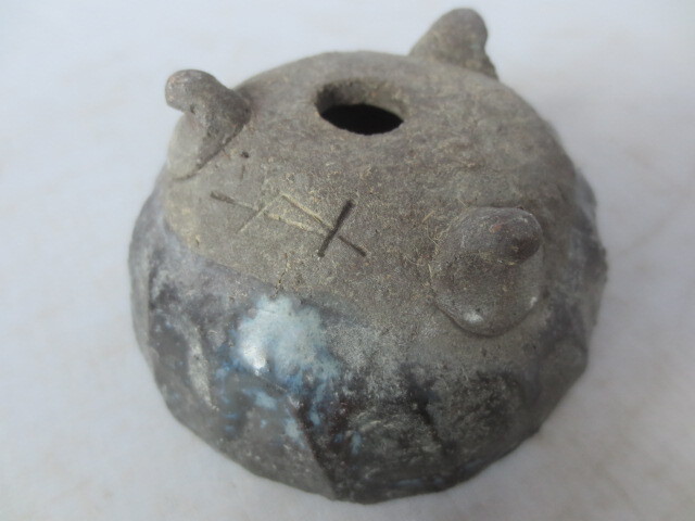 - 【艸】 和鉢 手びねり 黒釉 小花盆 在銘 KZ-9 9may3