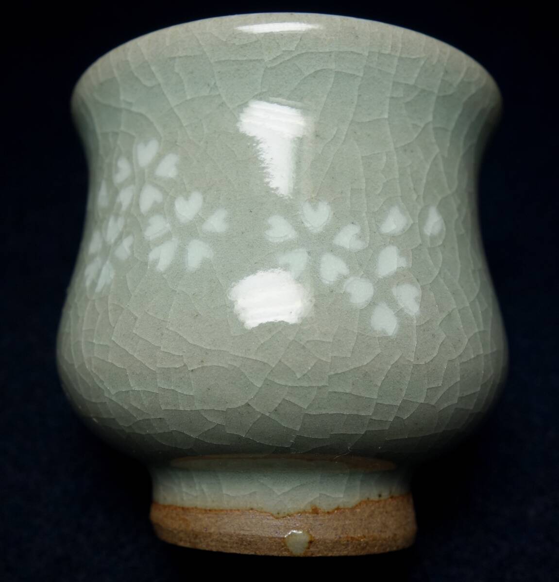 - 昭和期 極上煎茶青磁茶器 桜図 象嵌 最高峰 高田焼 陶磁器研究