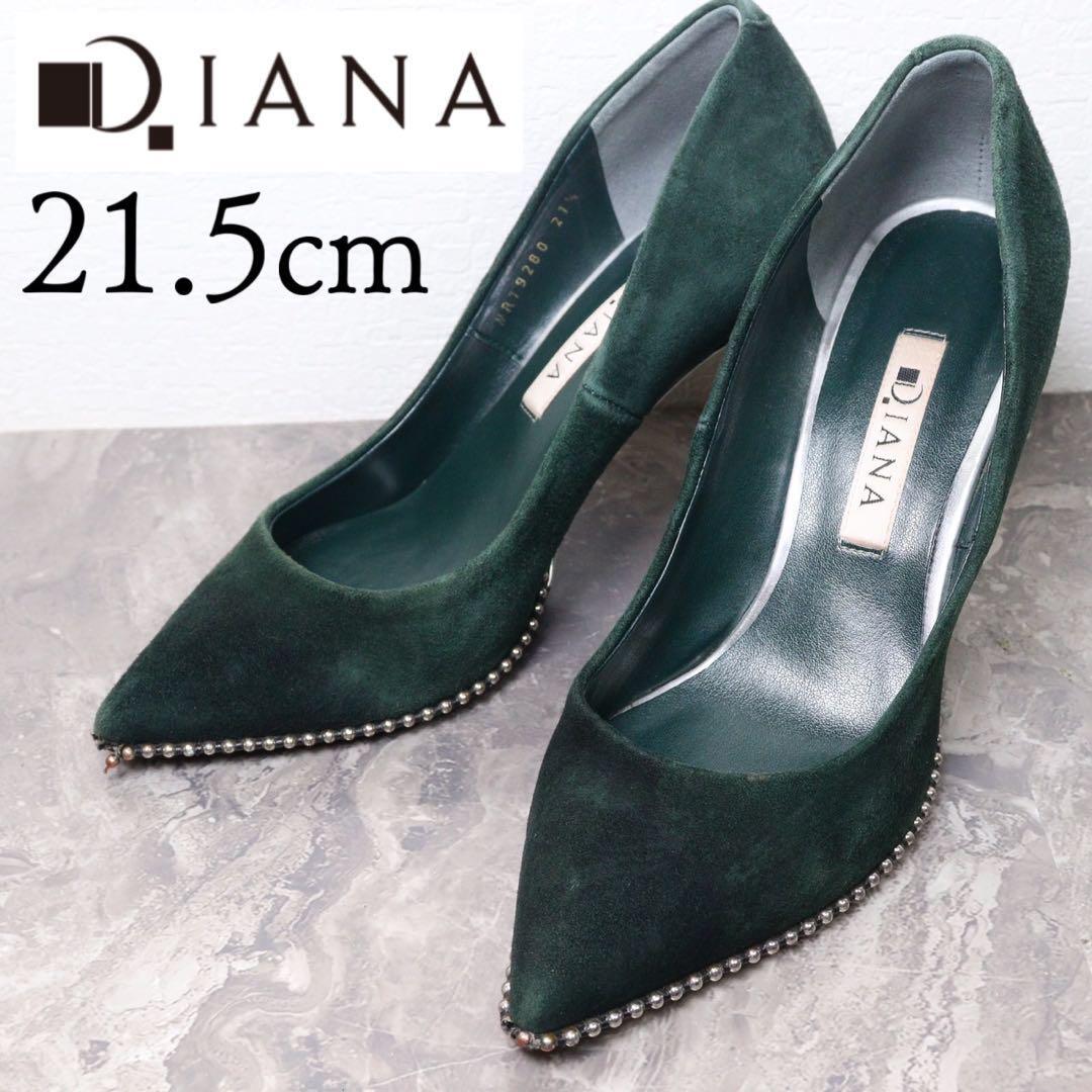 > DIANA ダイアナ 21.5 スエード パンプス ポインテッドトゥ グリーン