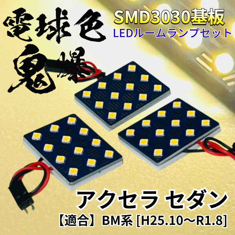 - 【電球色】アクセラ セダン BM系 [H25.10~R1.8] 暖色 鬼爆基板 3030SMD LED ルームランプ セット 車内灯 室内灯 パーツ アクセサリ マツダ