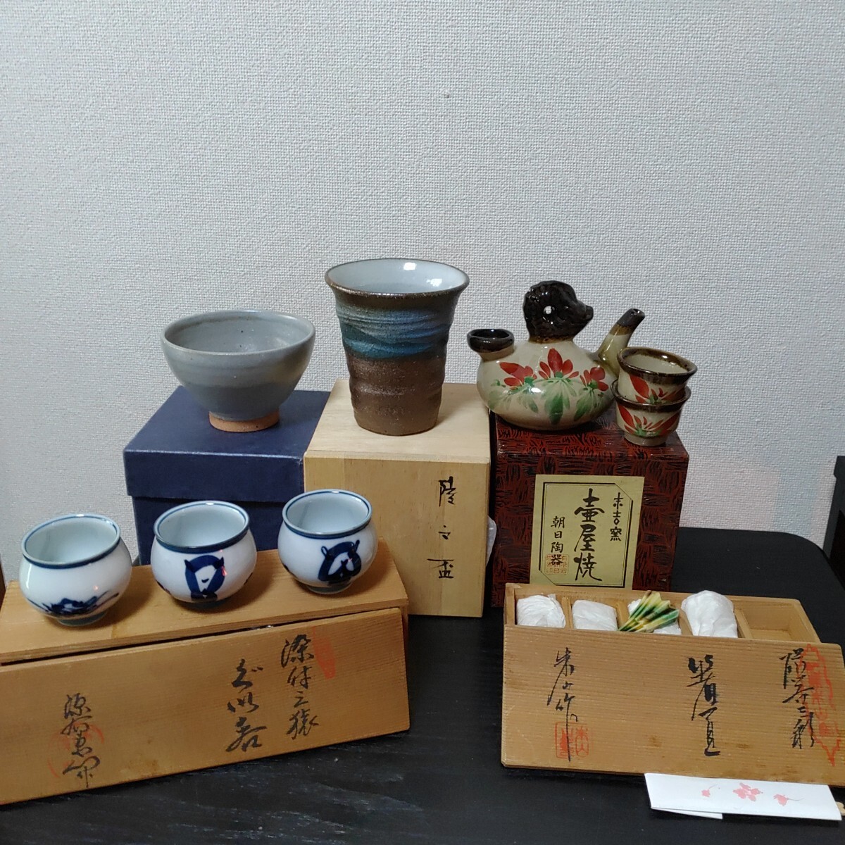 - 日本 陶芸セット 焼き物 湯呑 おちょこ JAPAN 土産 壷屋焼 箸置き 磁器 陶器 陶芸 0107-E3-TA5