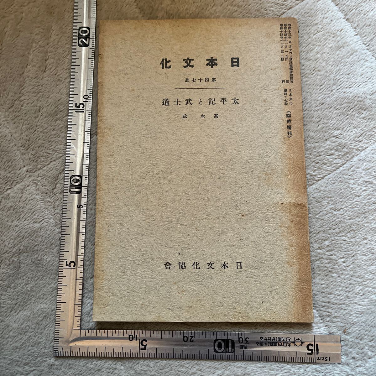 - 戦時下『日本文化』第47册「太平記と武士道」高木武著/日本文化協会/昭和14年