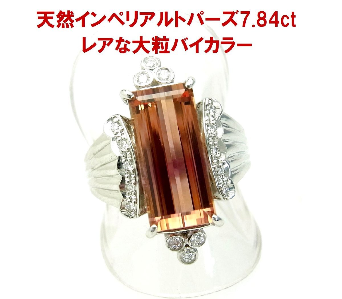 > レアな特級大粒7.84ctでバイカラーの天然インペリアルトパーズ プラチナリング 中宝鑑付 商品動画あり 送料込み