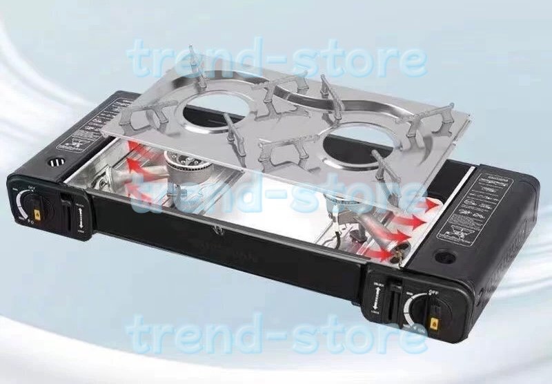- 人気★カセットストーブ カセットコンロ 耐荷重30kg 強火力2.5kW×2 強火力コンロ 防風 ガスボンベ式 2連 アウトドア ケース付き