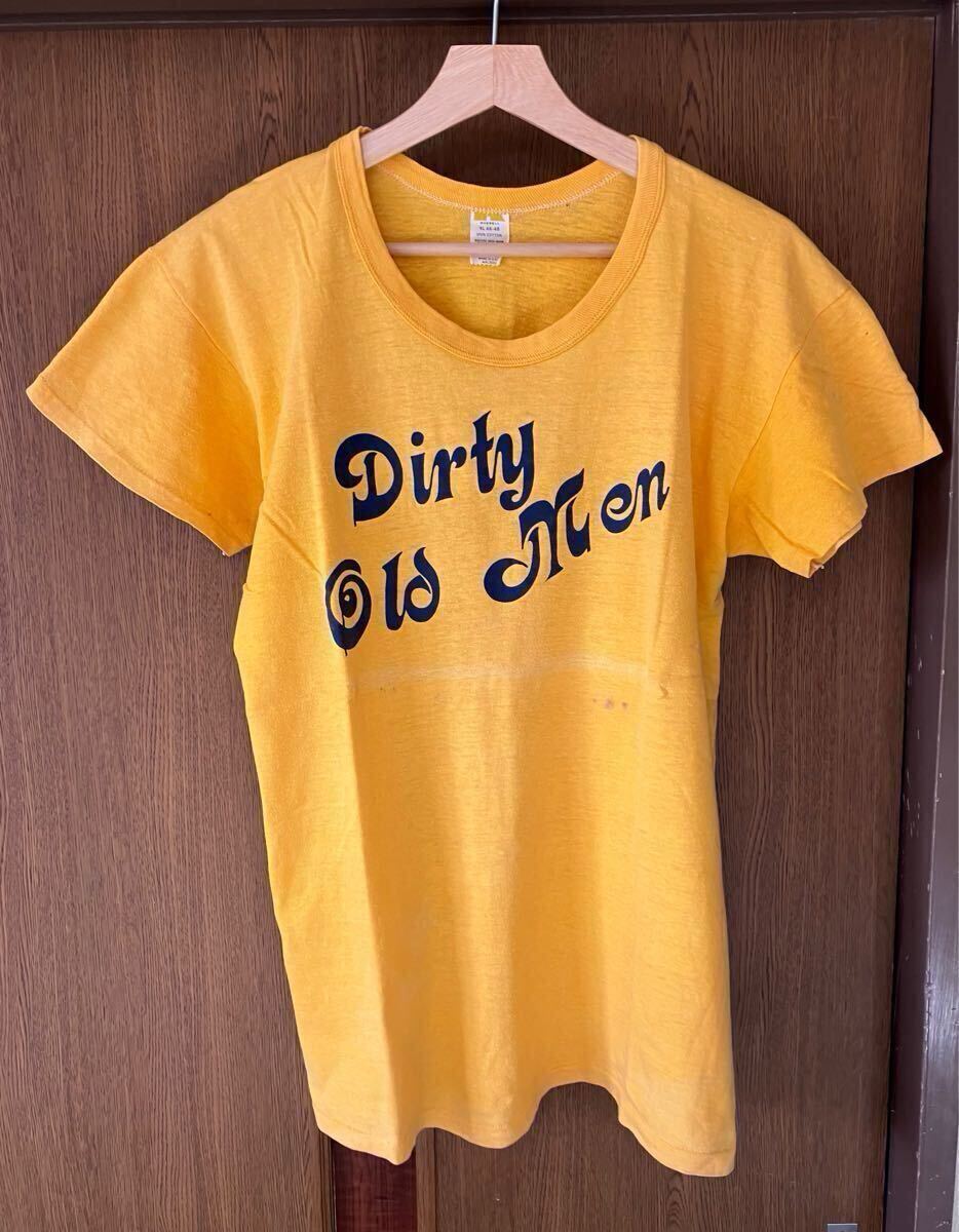 - 70s RUSSELL 希少 最初期 金タグ ラバープリント Tシャツ USA製 シングルステッチ 黄色 size L ビンテージ 70年代 ラッセル 60s 50s PIZZA