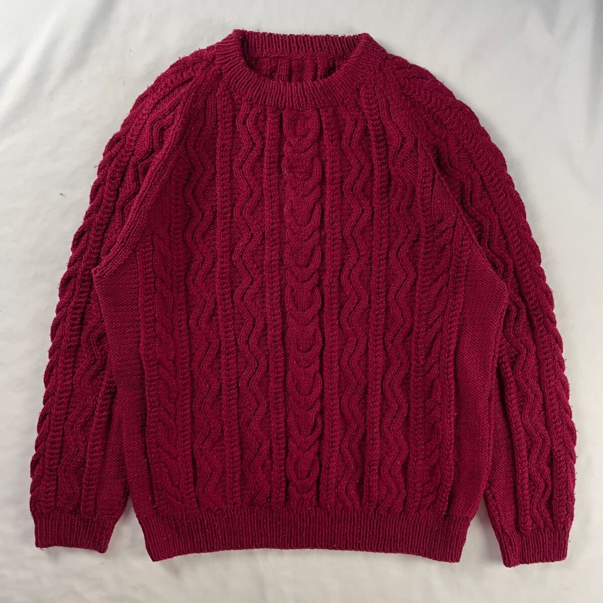 - Vintage Unknown ラグラン 立体 3D ケーブル編み 単色 プレーン ボルドー 臙脂 フィッシャーマンニット アランニット デザインニット