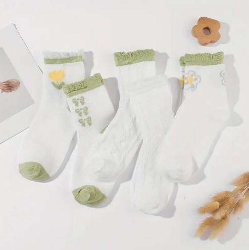 - E554 靴下 クルーソックス 5足セット 伸縮 レディース 通気性 春夏秋冬