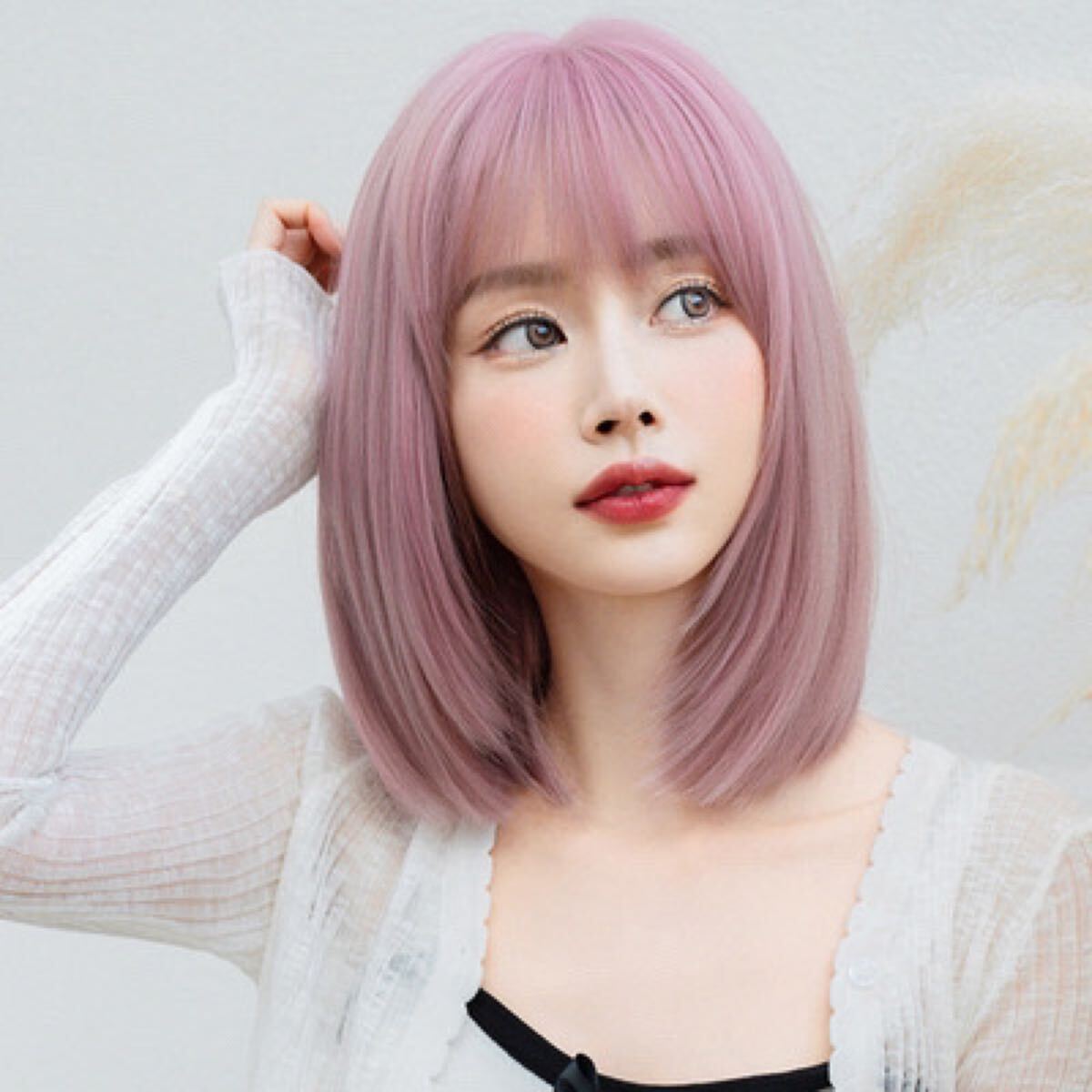 - W31◎フルウィッグ ファッションウィッグ ミディアム ボブ ピンク コスプレ かつら