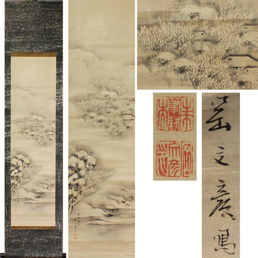- 《源》【即決・送料無料】古画 岡文彦 筆「極冬・雪景山水図」/箱付