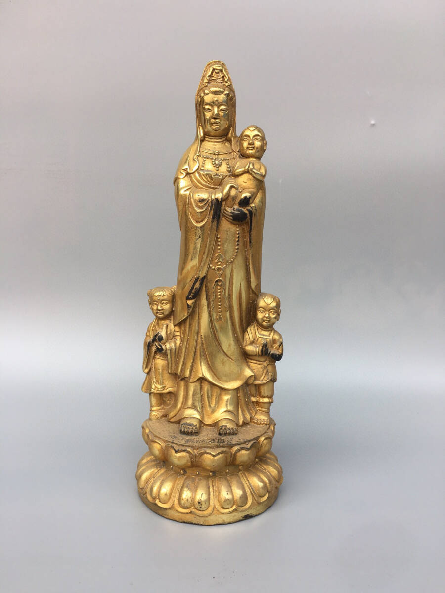 - 【超珍館蔵】銅製 塗金 送子觀音像 置物 古賞物 古美術品 稀少珍蔵品