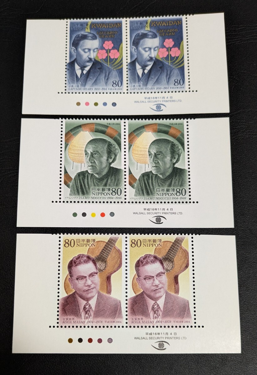 - 2004年・記念切手-文化人(第2シリーズ)第13集・3種類(銘版,CM付)
