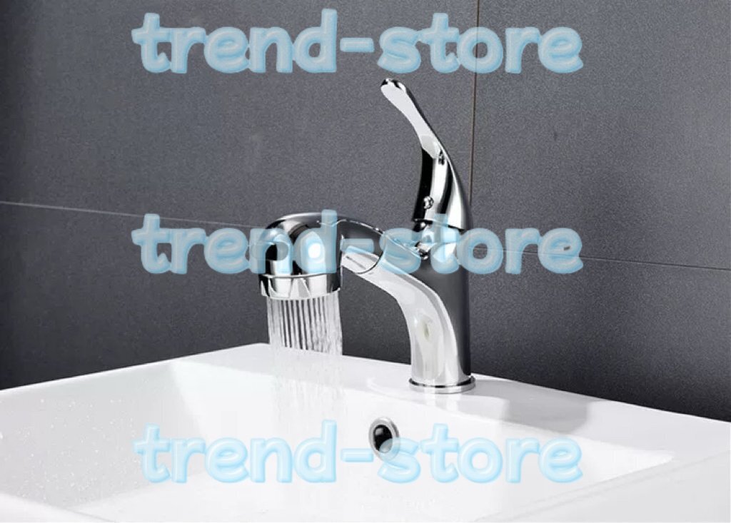 > 洗面台蛇口 混合水栓 キッチン用 シングルレバー混合栓 ホース引き出し式 整流 360度回転 シャワー切り替え可能 サテンメッキ 冷温切換え