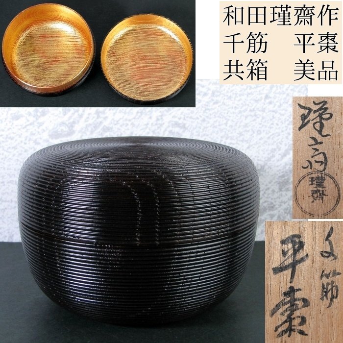 - 和田瑾齋作 千筋平棗 幅:8.5cm 美品 共箱 茶道具/24a045